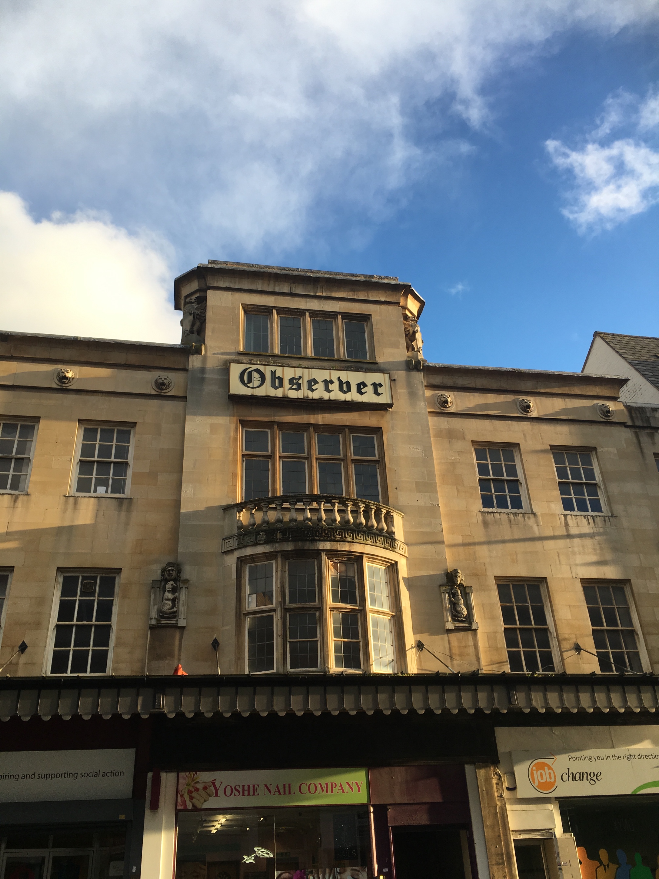 The sandstone used to build this imposing facade was glowing in the last light of late afternoon, but the building looked most sad. Its bold headline never more apt, as life went on below and the old Observer watched on without comment.