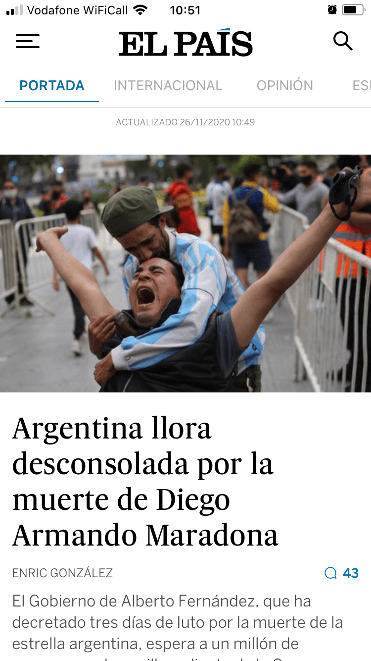 His importance to his home country cannot be over-stated. Sadly, he and the success of the Argentine team was the military junta’s bread and circuses of those days. That nation’s recent history is still being unpicked. The death of this little guy from Buenos Aires will lead to more unpicking. This article from The Guardian outlines some views about Maradona from Argentine people.