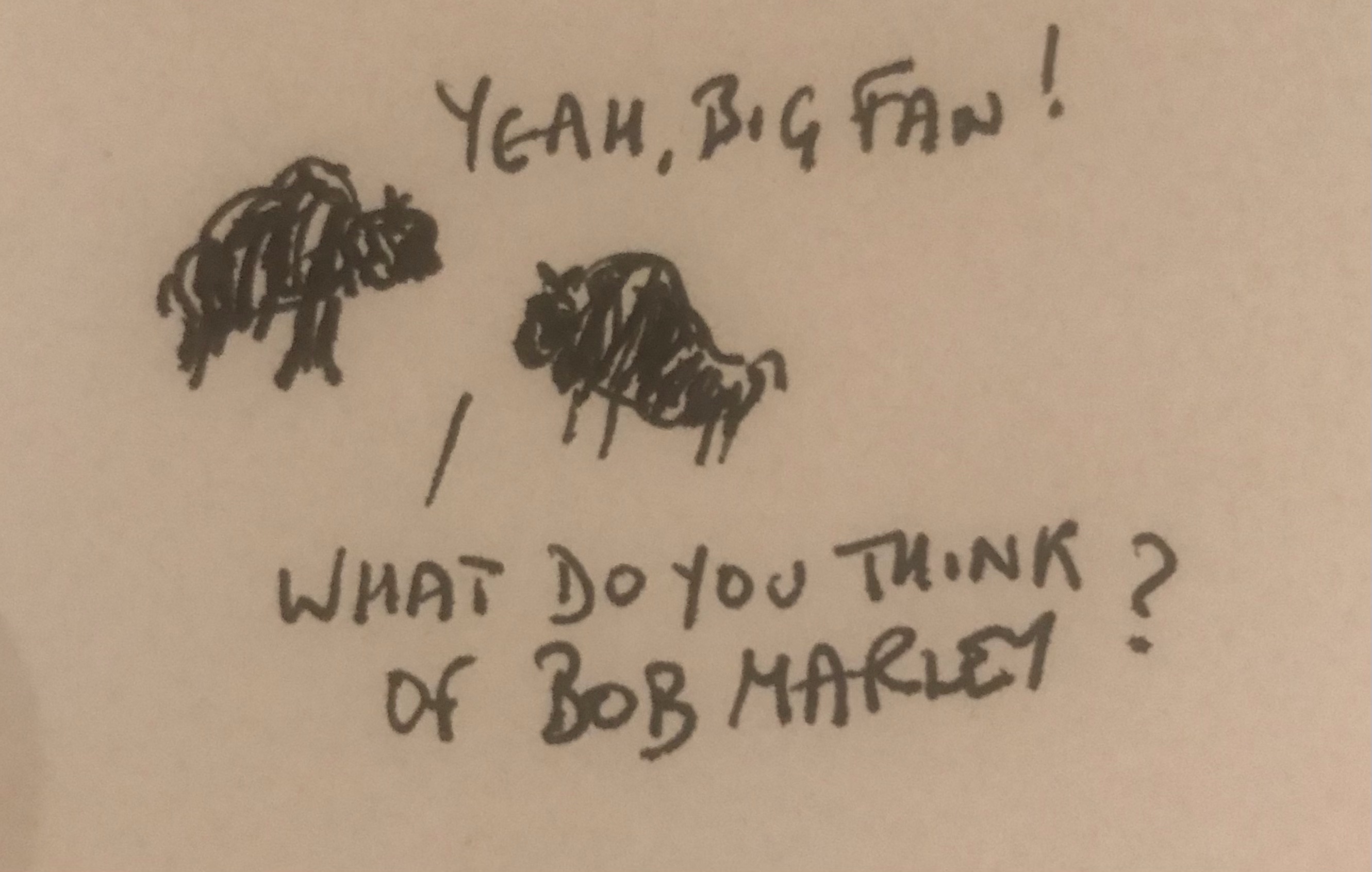 n.b. American Bison / also known as buffalo / Bob Marley / Buffalo Soldiers / African-American regiments of the US Army / Civil wars of the USA / Indigenous Americans* / First Nation / slavery / colonisation / land grabs / exploitation / What is freedom? / What do we love and whom do we love? / Who pays for prosperity? / Is a life survived best left unexposed? / ethics / Trace’ by Lauret Savoy.