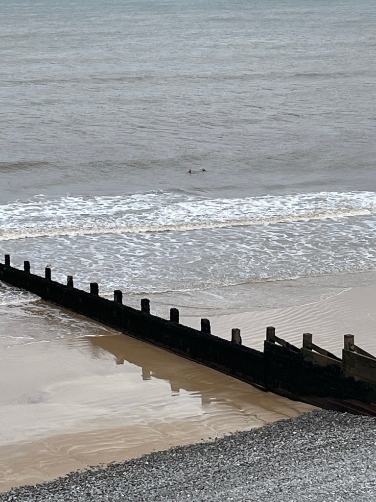 Picture shows two people swimming in The North Sea a substantial period before the laughingly labelled, British Summer Time kicked in.
