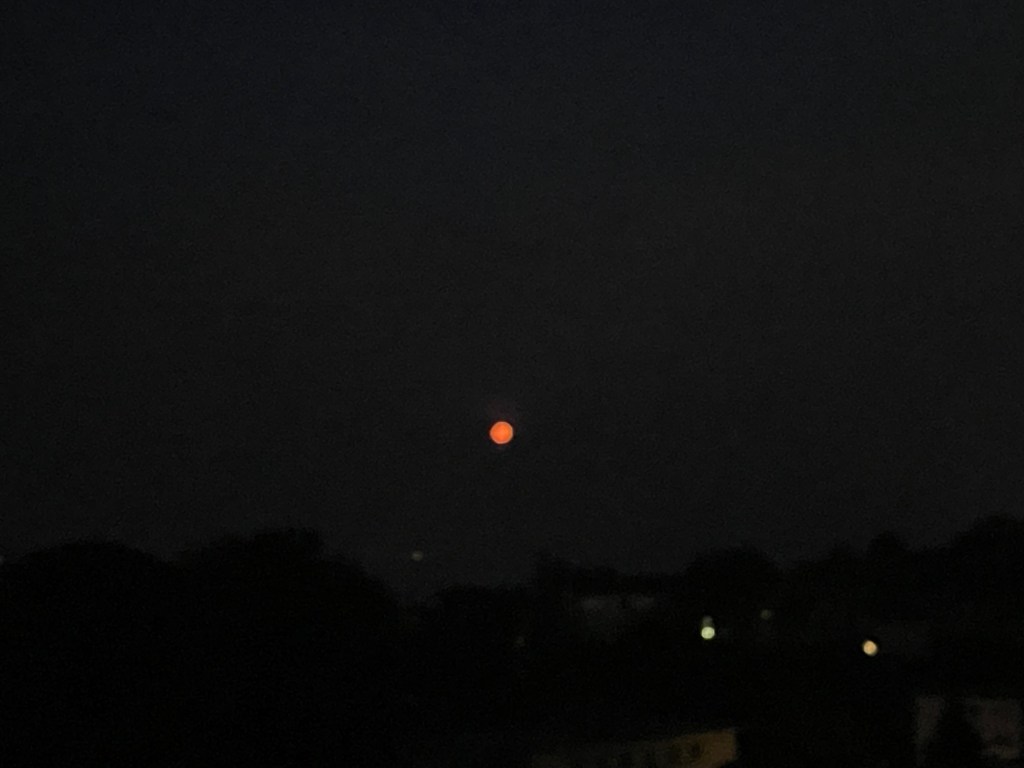 the full Moon flickers on amber