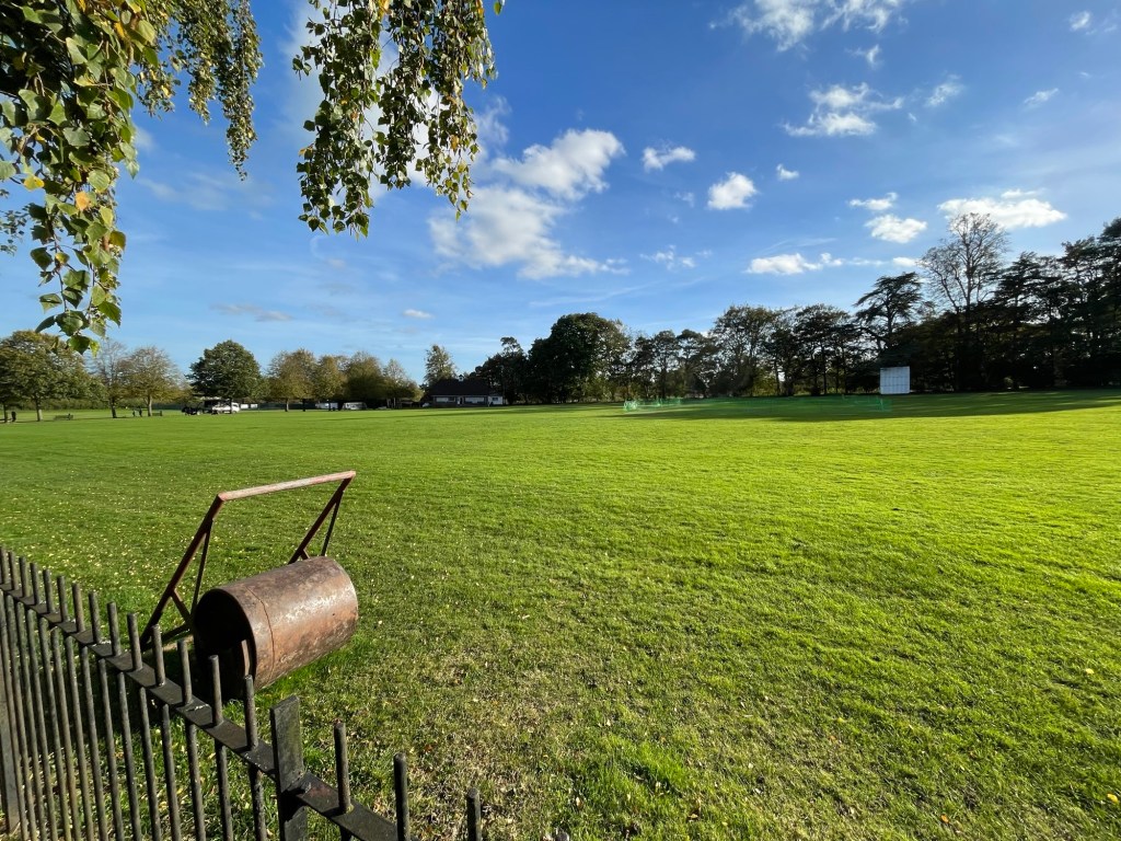 his cricket whites dusty, grass stained at the knee from last weekend's game