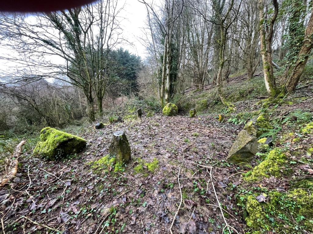 Thirteen stones in a recently built stone circle in a nearby piece of private woodland, each stone representing one of the New Moons of the year.