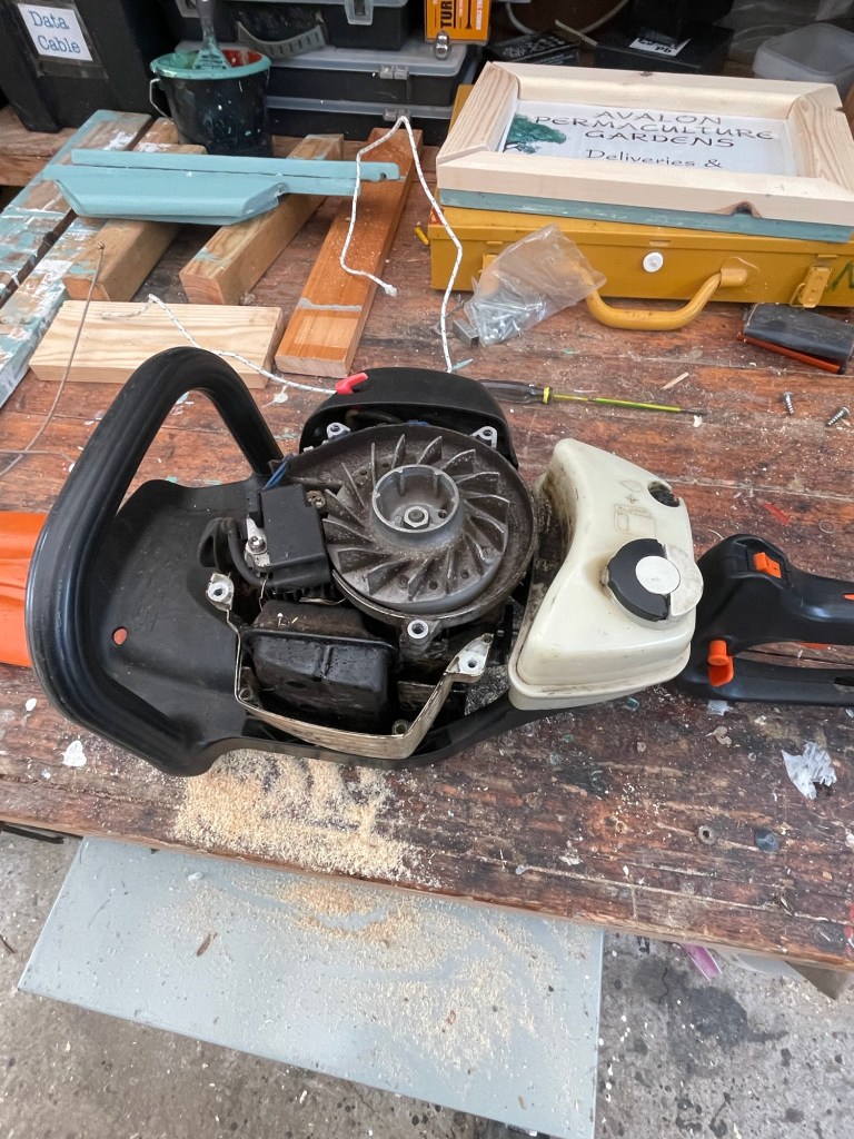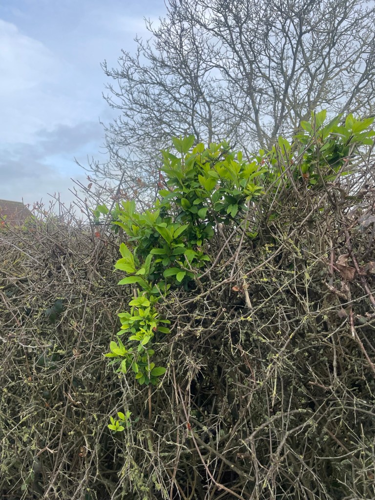 Today, after retrieving the pull-cord handle from Wild Lea, where it had been forgotten after becoming separated from the hedge-cutter, I spent much of the day cutting wild roses down to hedge level, using clippers. This work should only ever be done when gloves are worn and eye protection is in place. I got through most of the day unharmed, but was still grateful for the PPE when one long rose stem whiplashed as I pulled it from the hedge. My right ear lobe and top of my head were caught, but there’s no other damage to report.