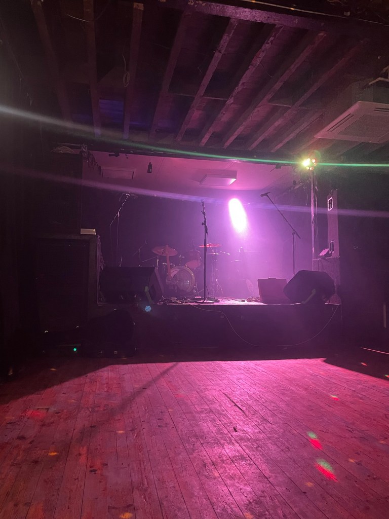 The place has been operating quite happily as a venue for local musicians for over a decade. The guy on the door is very laid back, having time for everyone. The bar man and sound engineer are similarly chilled. It’s gloomy, tatty, but welcoming enough. I feel comfortable in here.