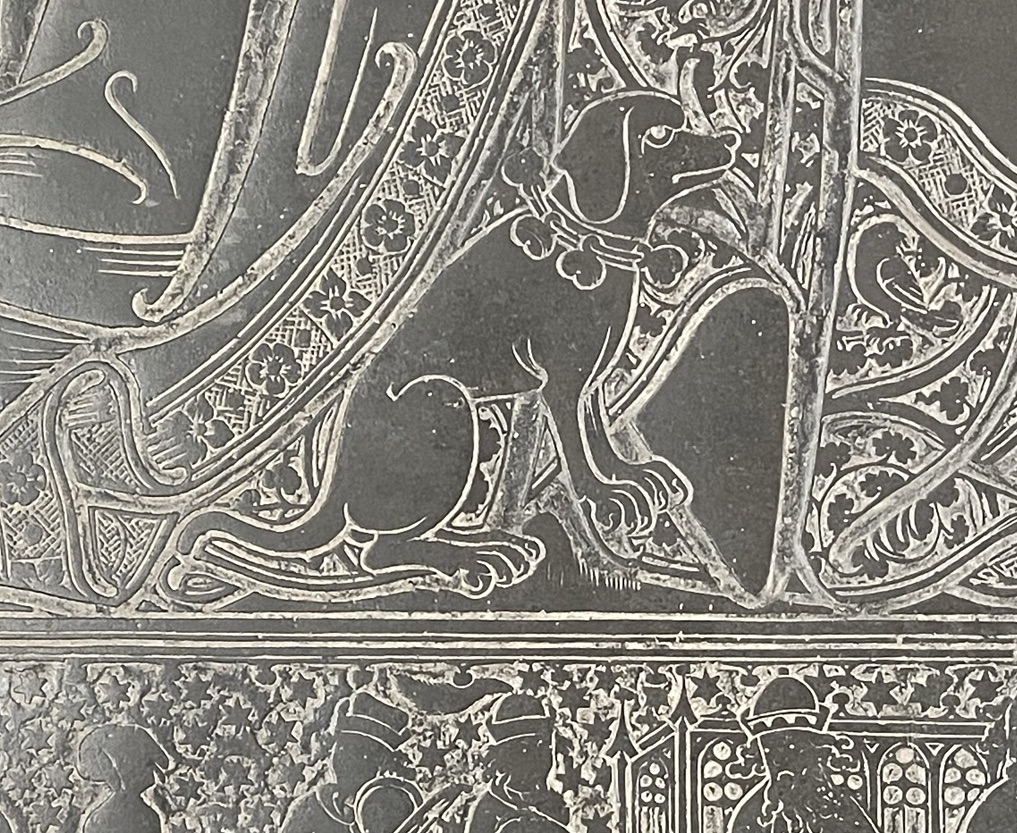 The interior of the minster contained some choir stalls from the C14th and some highly detailed brasses, one of a knight with his lady and his faithful hound at his feet. Admittedly, a dog that was impatient for supper.
