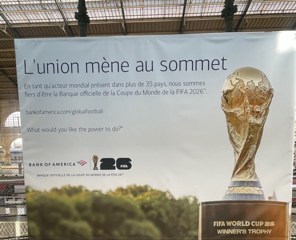 The war in Iran, the eastern Mediterranean and the Gulf of Arabia and as of today, Iraq is showing little signs of diminishing. The advertisers at Bank of America have chosen this month to launch their FIFA World Cup 2026 sponsorship campaign here in Paris. With the 47th President of the USA, the only ever FIFA Peace Prize recipient, is making fools of FIFA.